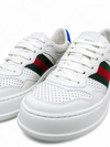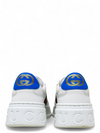 Material y color: Cuero blanco con red verde y roja, detalle de cuero azul en la parte trasera