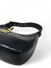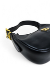 Material y color externo: Cuero negro. Material y color interno: Satín negro. Detalles internos: 1 Compartimento. Color de herrajes: Dorado. Forma de cerrar: Cremallera. Incluye: Dust bag, bandolera removible.