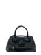 Cartera marca Coach en cuero negro con herrajes dorados, detalle de logotipo en la parte delantera, llavero característico, asas dobles enrolladas, bolsillo exterior en la parte trasera con cierre de imán, pies protectores, bandolera ajustable removible, forro interno en lona a tono, tres bolsillos internos; uno con cierre y cierre de cremallera en la parte superior.