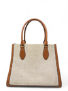 Material y color externo: Lienzo beige y cuero.