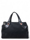 Material y color externo: Lona negra con monogramas, ribete y asas de cuero.