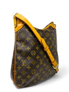 Material y color externo: Lona monogram con detalles en piel de vacuno natural. Material y color interno: Tela café. Detalles internos: 1 Compartimento, 2 Bolsillos internos, 1 Bolsillo externo. Color de herrajes: Dorado. Forma de cerrar: Cremallera.