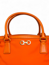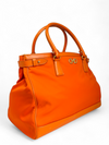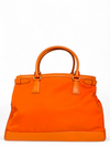 Material y color externo: Nailon con acabados en cuero saffiano en tono naranjado.
