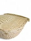 Material y color externo: Piel beige con relieve de cocodrilo.