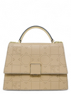 Material y color externo: Piel de vacuno con grabado Stamp de cubos y logo PG en tono nude.