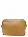 Material y color externo: Piel de grano natural en tono café con grabado de GG entrelazada en relieve. Material y color interno: Tela beige. Detalles internos: 1 Compartimento, 2 Bolsillos. Color de herrajes: Dorado. Forma de cerrar: Cremallera.