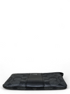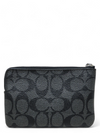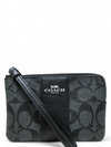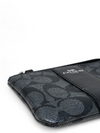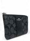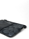Material y color externo: Lona negra con monogramas y acabados en piel lisa. Material y color interno: Tela negra. Detalles internos: 1 Compartimento, 2 Ranuras para tarjetas. Color de herrajes: Plateado. Forma de cerrar: Cremallera.