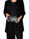 Material y color externo: Piel de ternero en tono negro. Material y color interno: Tela vino tinto. Detalles internos: 1 Compartimento. Color de herrajes: Plateado. Forma de cerrar: Cremaller