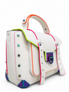 Material y color externo: Cuero blanco crudo con detalles multicolor en tonos fosforescentes.