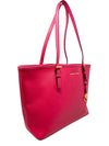 Material y color externo: Cuero saffiano fucsia. Material y color interno: Jacquard beige con logo. Detalles internos: 1 Compartimento, 9 Bolsillos. Color de herrajes: Dorado. Forma de cerrar: Broche.