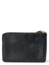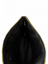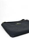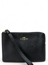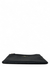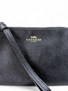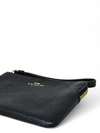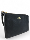 Material y color externo: Cuero grossgain en tono negro. Material y color interno: Tela negra. Detalles internos: 1 Compartimento, 2 Ranuras para tarjetas. Color de herrajes: Dorado. Forma de cerrar: Cremallera.