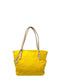 Cartera marca Coach en cuero Beige con herrajes plateados, logotipo en la parte delantera, asas planas dobles en cuero café, bandolera removible, forro interno en satín azul claro, tres compartimentos interiores; uno con cierre y tres bolsillos en las paredes internas; uno con cierre y cierre de imán en la parte superior.