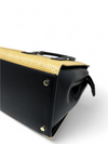 Material y color externo: Cuero saffiano negro y rafia. Material y color interno: Jacquard rosado con logo. Detalles internos: 1 Compartimento, 2 Bolsillos. Color de herrajes: Dorado. Forma de cerrar: Cremallera. Incluye:Bandolera removible.