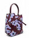 Material y color externo: Cuero en tono uva con estampado de flores.