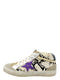 Material y color: Algodón con bordado multicolor y cuero negro.
