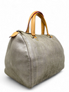 Material y color externo: Cuero engamuzado plateado. Material y color interno: Cuero plateado. Detalles internos: 1 Compartimento, 1 Bolsillo. Color de herrajes: Dorado. Forma de cerrar: Cremallera. Incluye: Dust bag.