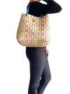 Material y color externo: Policloruro de vinilo y cuero beige con monogramas multicolor.