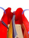 Material y color interno: Policloruro de vinilo multicolot y cuero rojo.