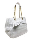 Material y color externo: Cuero blanco con monogramas. Material y color interno: Tela café. Detalles internos: 1 Compartimento, 1 Bolsillo interno, 1 Bolsillo externo. Color de herrajes: Dorado. Forma de cerrar: Magnético. Acceorios:Dust bag.