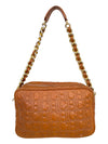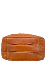 Material y color externo: Cuero café. Material y color interno: Tela café. Detalles internos: 1 Compartimento, 1 Bolsillo. Color de herrajes: Dorado. Forma de cerrar: Cremallera. Accesorios: Dust bag.