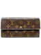 Material y color externo: Lona café con monogramas. Material y color interno: Cuero café. Detalles internos: 1 Compartimento, 1 Bolsillo. Color de herrajes: Dorado. Forma de cerrar: Magnético.