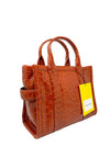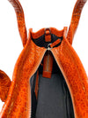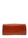 Material y color externo: Cuero café con efecto de piel de cocodrilo. Material y color interno: Tela negra. Detalles internos: 1 Compartimento, 1 Bolsillo. Color de herrajes: Plateado. Forma de cerrar: Cremallera. Accesorios: Dust bag y etiqueta.