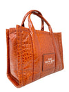 Material y color externo: Cuero café con efecto de piel de cocodrilo. Material y color interno: Tela negra. Detalles internos: 1 Compartimento, 3 Bolsillo. Color de herrajes: Plateado. Forma de cerrar: Cremallera. Accesorios: Dust bag, bandolera removible, tarjeta de cuidados.