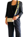 Material y color externo: Cuero multicolor. Material y color interno: Tela negra. Detalles internos: 2 Compartimentos, 1 Bolsillo interno, 1 Bolsillo externo. Color de herrajes: Dorado. Forma de cerrar: Cremalleras. Incluye: Dust bag, bandolera removible, manual de cuidados.