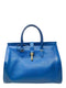 Material y color externo: Cuero azul turquí y gamuza negra. Material y color interno: Gamuza negra. Detalles internos: 2 Compartimentos. Color de herrajes: Dorado. Forma de cerrar: Cremallera. Accesorios: Bandolera removible.