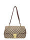 Material y color externo: Lona monogram y cuero café. Material y color interno: Tela negra. Detalles internos: 1 Compartimento, 1 Bolsillo. Color de herrajes: Negro. Forma de cerrar: Broche.