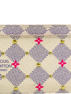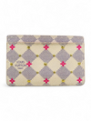 Material y color externo: Lona damier azur con detalles de taches y flores. Material y color interno: Cuero rosado. Detalles internos: 3 Ranuras para tarjetas.