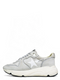 Material y color: Cuero blanco, ante gris con detalles en charol rosado y engomados a contraste.