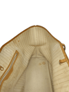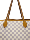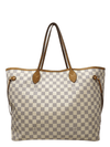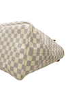 Material y color externo: Lona Damier Azur. Material y color interno: Tela beige. Detalles internos: 1 Compartimento, 1 Bolsillo. Color de herrajes: Dorado. Forma de cerrar: Broche