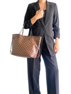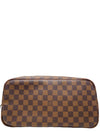 Material y color externo: Lona Damier Ebene. Material y color interno: Tela roja. Detalles internos: 1 Compartimento, 1 Bolsillo. Color de herrajes: Dorado. Forma de cerrar: Broche.