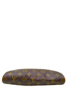 Material y color externo: Lona monogram. Material y color interno: Tela café. Detalles internos: 1 Compartimento. Color de herrajes: Dorado. Forma de cerrar: Cremallera. Incluye: Bandolera removible.