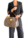 Material y color externo: Lona monogram. Material y color interno: Gamuza beige. Detalles internos: 1 Compartimento, 3 Bolsillos. Color de herrajes: Dorado. Forma de cerrar: Magnético. Incluye:Dust bag.
