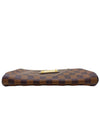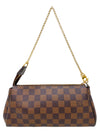 Material y color externo: Lona revestida café en Damier Ebene. Material y color interno: Tela roja. Detalles internos: 1 Compartimento. Color de herrajes: Dorado. Forma de cerrar: Cremallera. Accesorios: Dust bag, bandolera removible.