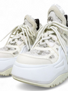 Material y color: Combinación de materiales técnicos en tonos blancos.