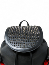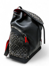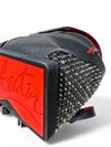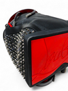 Material y color externo: Piel de becerro negra con detalles e icónicas tachuelas plateadas de la Maison Christian, base en goma resistente Louboutin