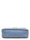 Material y color externo: Piel granulada azul. Material y color interno: Tela azul con logo. Detalles internos: 1 Compartimento. Color de herrajes: Bronce. Forma de cerrar: Cremallera. Incluye: Caja, cadena removible, dust bag.