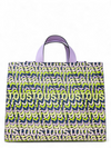 Material y color externo: Lona con estampado de monogramas multicolor y detalles de piel sintética en color malva.