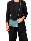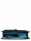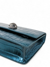 Material y color externo: Cuero verde metalizado con efecto de piel de cocodrilo.