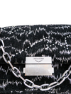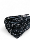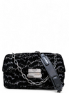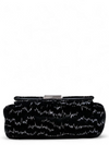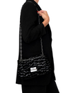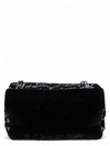 Material y color externo: Terciopelo negro acolchado con detalles de taches y glitter.