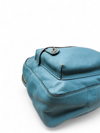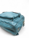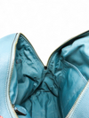 Material y color externo: Piel granulada pulida en tono verde azulado.
