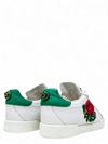 Material y color: Piel de becerro blanca con detalles verde y bordado de flor.