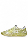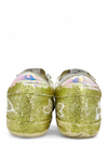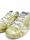 Material y color: Piel blanca con glitter, estrella y refuerzo del talón en cuero tornasol.
