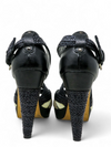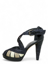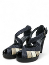 Material y color: Cuero intrincado negro, beige y blanco.