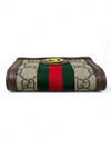 Material y color externo: Lona revestida con monogramas y ribete marrón. Material y color interno: Cuero marrón. Detalles internos: 2 Compartimentos, 2 Bolsillos, 5 Ranuras para tarjetas. Color de herrajes: Dorado. Forma de cerrar: Botón a presión. Incluye: Dust bag.