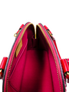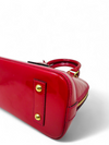 Material y color externo: Charol rojo con monogramas. Material y color interno: Tela rosada. Detalles internos: 1 Compartimento, 1 Bolsillo. Color de herrajes: Dorado. Forma de cerrar: Cremallera. Incluye: Dust bag, bandolera removible, candado y llaves.