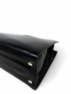 Material y color externo: Piel de becerro negra. Material y color interno: Tela negra con logo. Detalles internos: 1 Compartimento, 1 Bolsillo. Color de herrajes: Plateado. Forma de cerrar: Magnético. Incluye: Dust bag, asa removible.